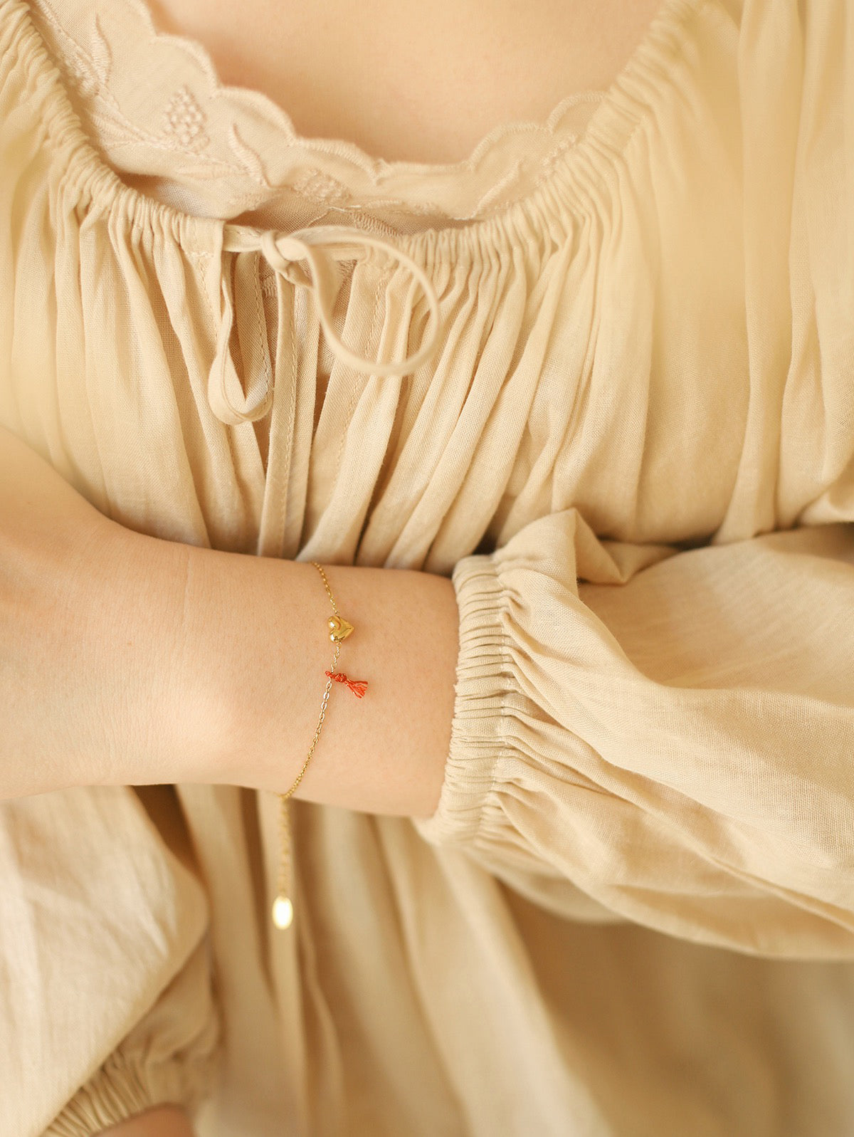 Descoperă Eleganța Delicată: Brățara „Amor Auriu” cu Inimioară și Talisman Roșu