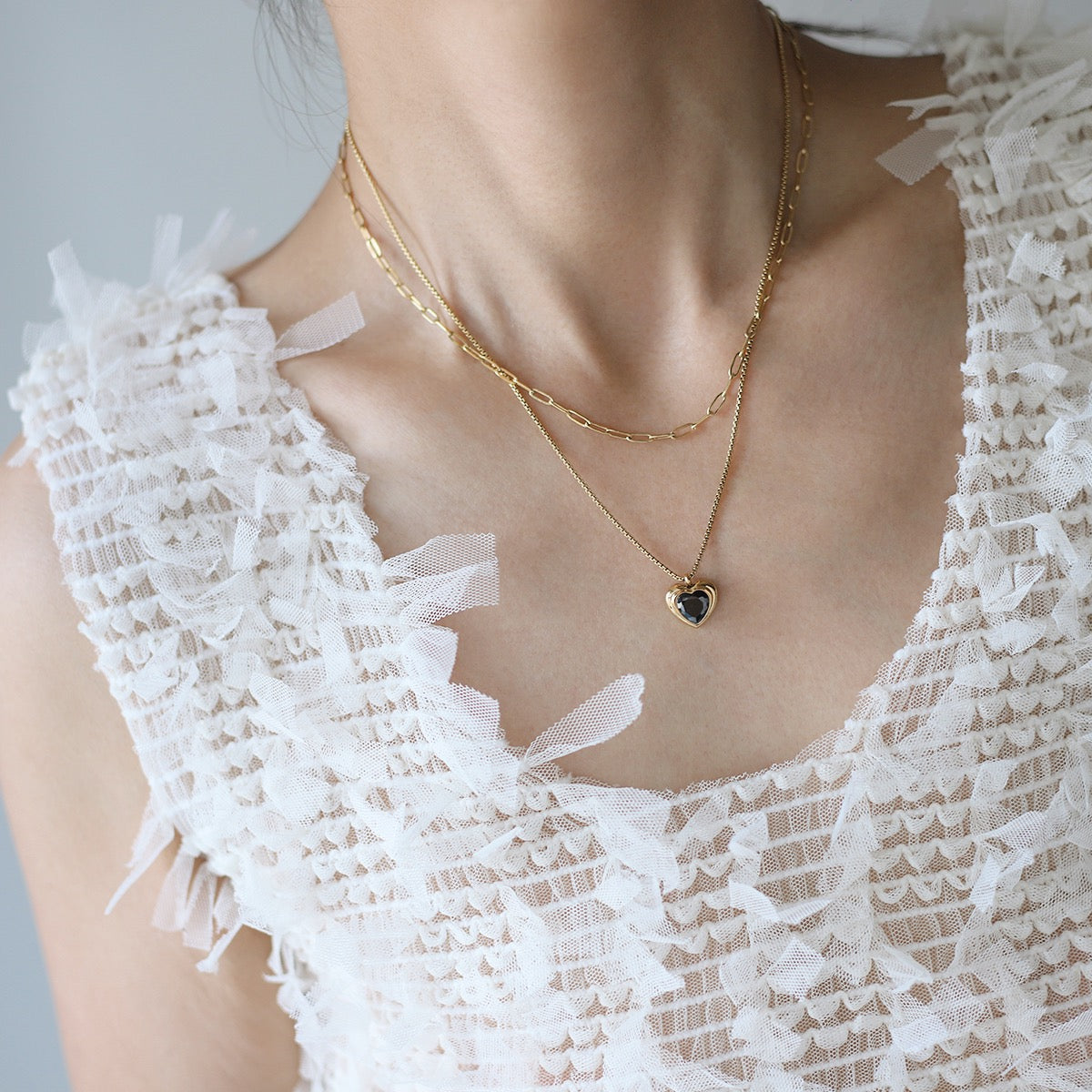 Descoperă Colierul Dublu „Inimă de Aur” – un accesoriu rafinat și plin de semnificație, format din două lanțuri elegante și un pandantiv inimă cu detaliu negru. Designul său modern combină finețea clasică a aurului cu misterul și puterea simbolică a centrului negru, creând o bijuterie unică, ideală pentru orice ocazie.